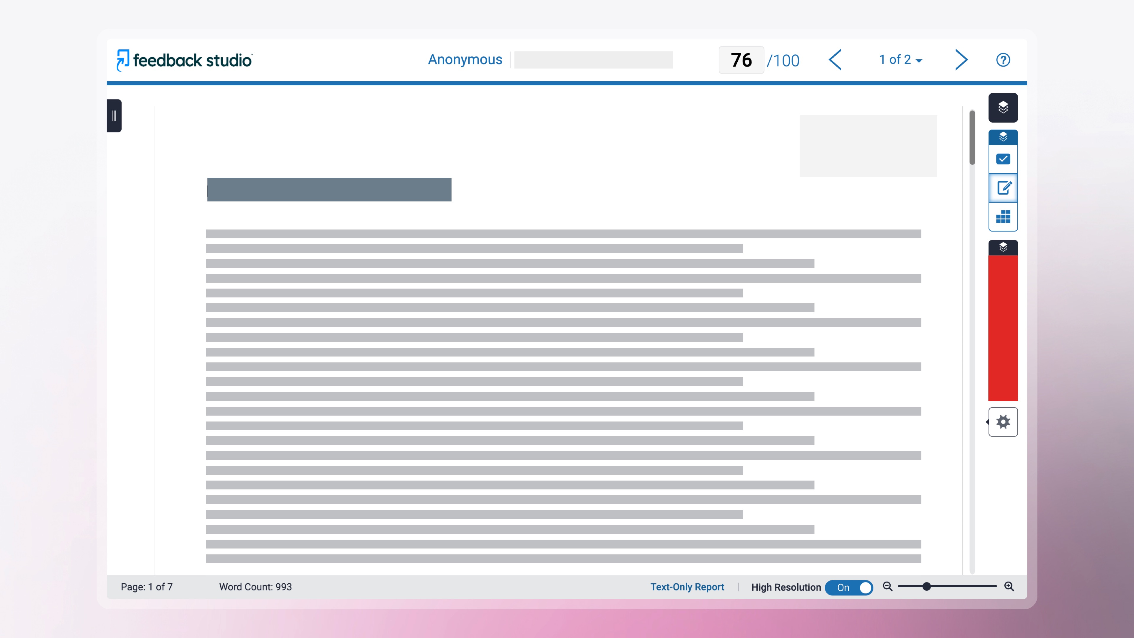 - Click the blue pencil icon for the submission you want to mark. This will open the submission in Turnitin Feedback Studio.
